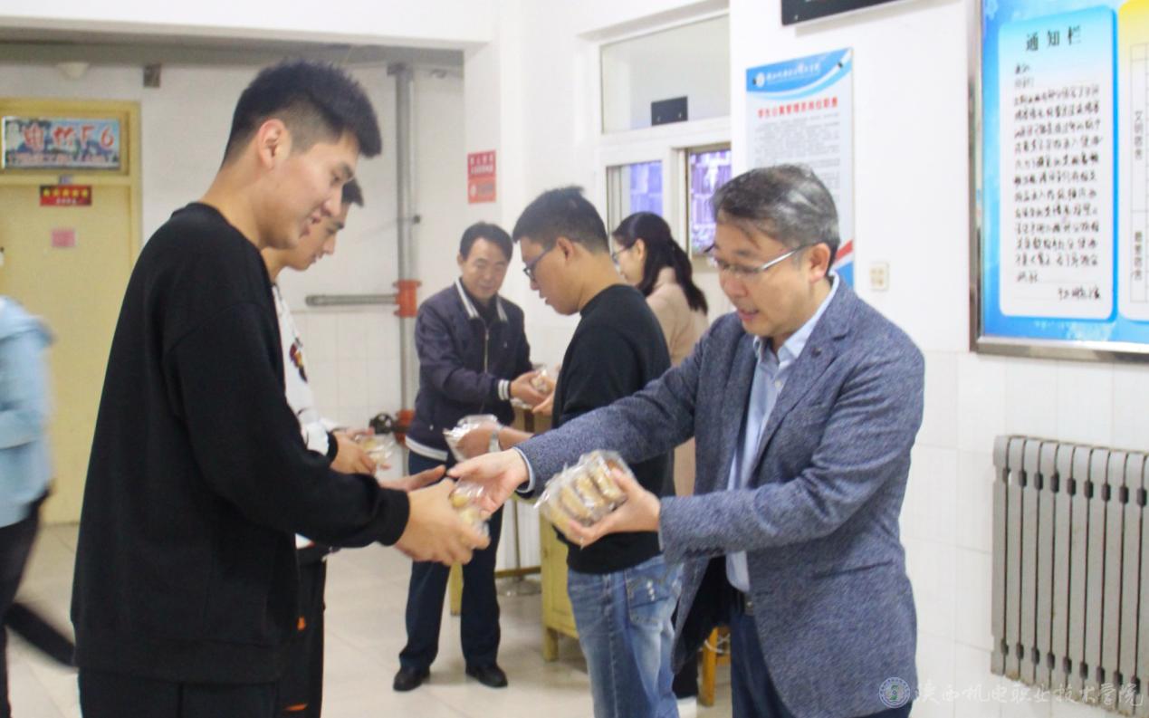 月到中秋分外明,人到佳节别样亲。中秋、国庆双节当日,为了让留校的同学们也能感受到节日的气氛与学院的温暖,党委书记伊逊智、副院长张琴,学生处处长王建斌、教务处副处长高赋及学生处的教师们,为身处异乡的同学们送去了节日的问候,为留校学生免费发放月饼。