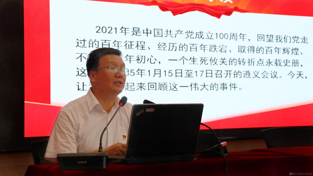 党委副书记 纪委书记 齐晓军讲授专题党课《遵义会议及时代价值》,齐晓军从遵义会议的历史背景、会议内容、会议意义和会议精神及时代价值四方面进行了深入阐释。他讲到,在新时代我们更应该发扬遵义会议的精神,坚定信念破困局、实事求是闯新路、独立自主开新局、民主团结写新篇。