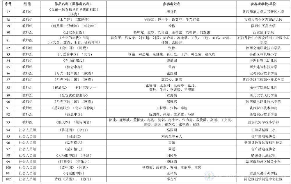 第四届“诵读中国”经典诵读大赛(陕西赛区)二等获奖名单(部分