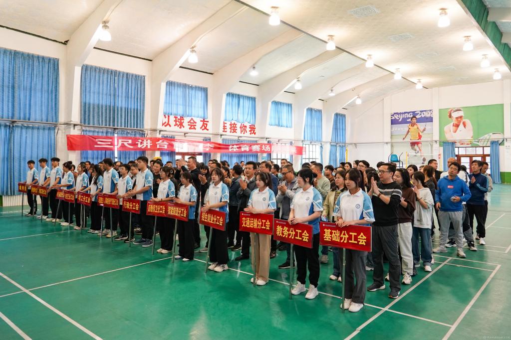 2023年10月16日,陕西机电职业技术学院教职工气排球比赛在宝福路校区羽乒馆顺利开幕。党委副书记、院长向纪明致开幕词,校工会主席李明主持开幕式。