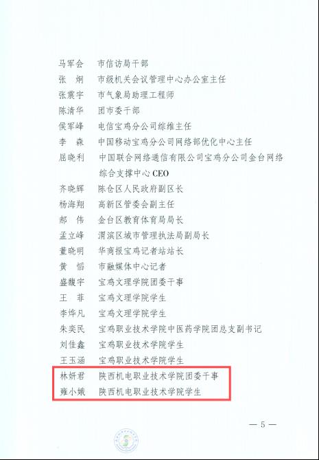 为确保马拉松的顺利举行,近日,由宝鸡市人民政府主办,2024年宝鸡马拉松鸣枪开跑。陕西机电职业技术学院积极响应共青团宝鸡市委的号召,积极宣传、广泛招募志愿者,经过层层选拔,最终遴选出750名志愿者为参加马拉松、半程马拉松、欢乐跑3项赛事的2.5万余选手提供志愿服务工作。我校被授予2024宝鸡马拉松筹办工作“先进集体”荣誉称号;我校团委干事林妍君,青年志愿者服务中心学生干部雍小娥、王伯俊被授予“先进个人”荣誉称号。