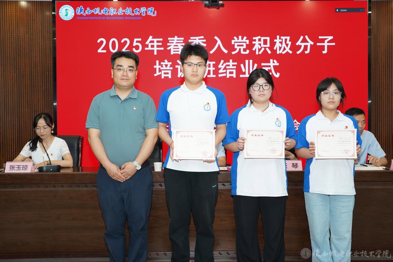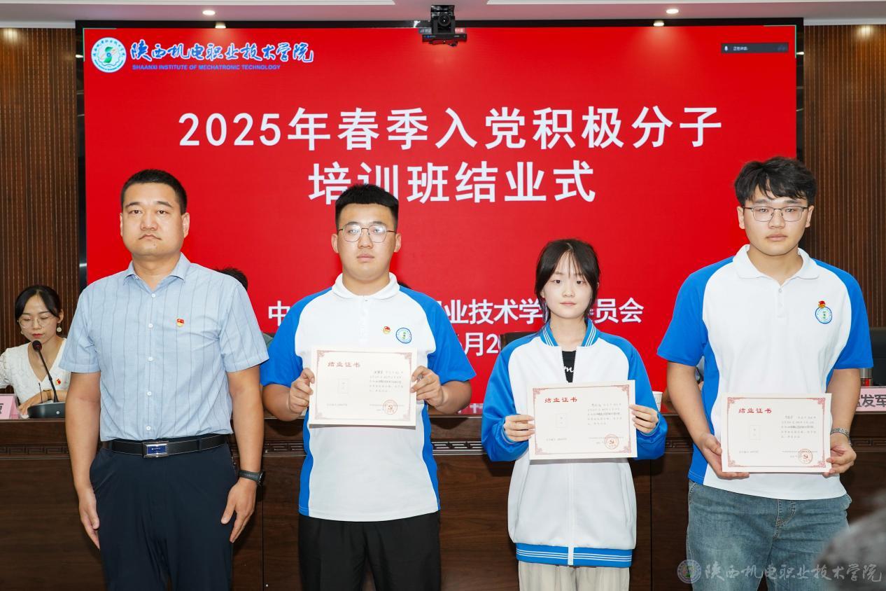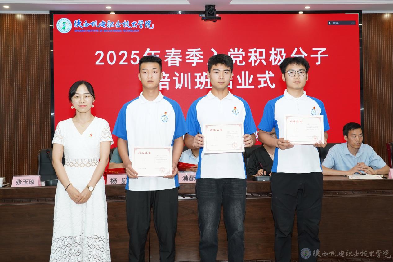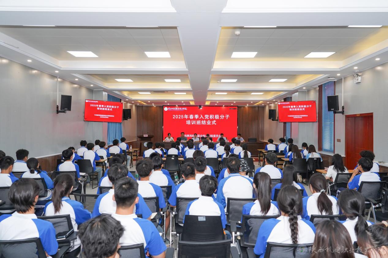 2025年6月20日下午,陕西机电职业技术学院在蟠龙校区博学楼111室举办了2025年春季入党积极分子培训班结业式。党委副书记张琴出席并讲话,数字经管学院党支部书记孟发军、铁道工程学院党支部书记满春燕、电子信息学院党支部书记杨鹏、交通运输学院党支部副书记冯秋佳及本期培训班百余名学员参加结业式,结业式由党委组织部综合科科长张玉琼同志主持。