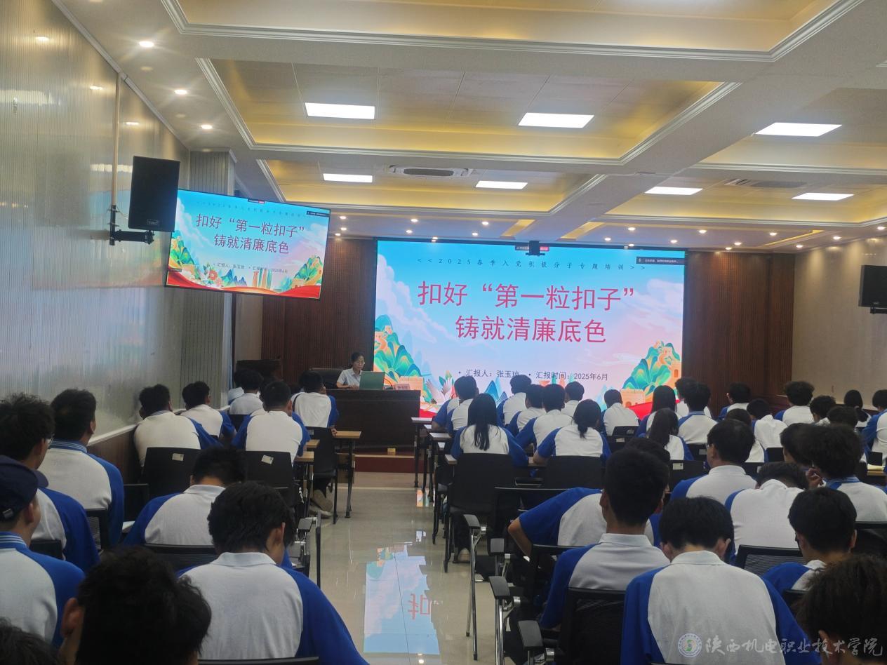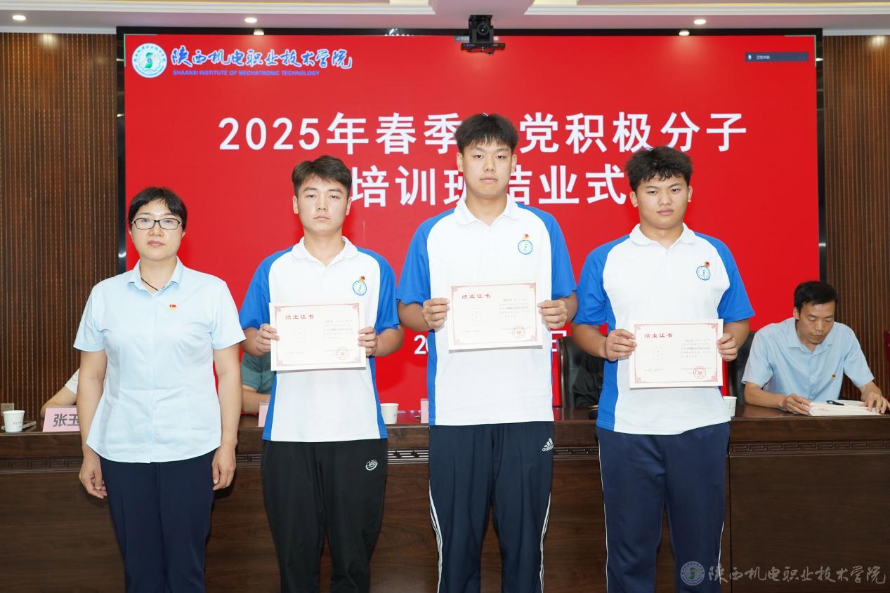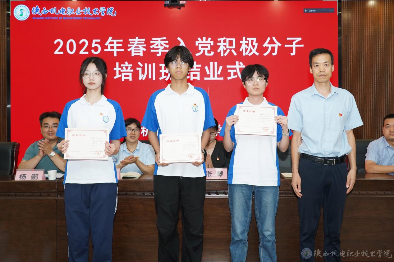 2025年6月20日下午,陕西机电职业技术学院在蟠龙校区博学楼111室举办了2025年春季入党积极分子培训班结业式。党委副书记张琴出席并讲话,数字经管学院党支部书记孟发军、铁道工程学院党支部书记满春燕、电子信息学院党支部书记杨鹏、交通运输学院党支部副书记冯秋佳及本期培训班百余名学员参加结业式,结业式由党委组织部综合科科长张玉琼同志主持。