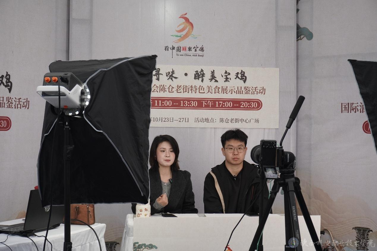 此次展会创新实施“主场馆+街区全域布展、商旅文一体联动”模式,构建“1+1+N”沉浸式展会空间,为学生提供了多元化的实践场景。展会现场,学生们分组行动,有的负责西凤酒展区的直播推广、有的聚焦非遗技艺体验区的文化展示、有的则参与“醉美宝鸡”消费体验周活动的线上宣传。学生程嘉琦说:“通过直播,我们不仅推广了产品,更讲述了宝鸡酒文化的故事。这比在教室里模拟实训更有成就感,更能锻炼我们的专业能力。”