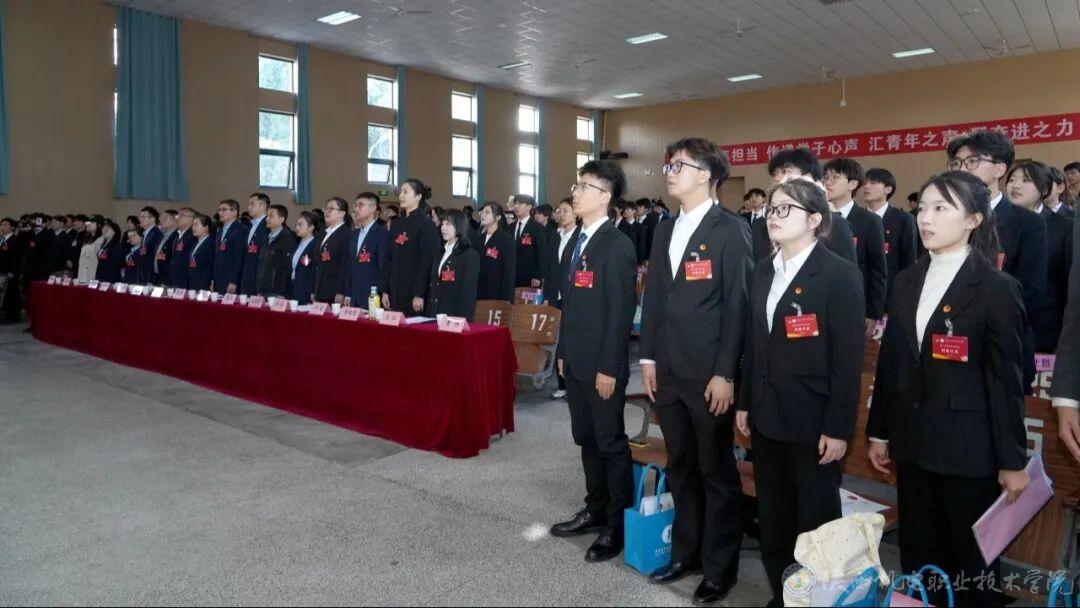 数字经管学院党支部书记孟发军、铁道工程学院党支部书记满春燕、电子信息学院院长高赋、智能制造学院党支部书记薛媛丽、交通运输学院党支部书记王枢、机械工程学院副院长杨红刚、铁路司机学院副院长杨波各二级学院团总支书记、副书记、校团委兼职副书记及学生正式代表200余人参加大会。