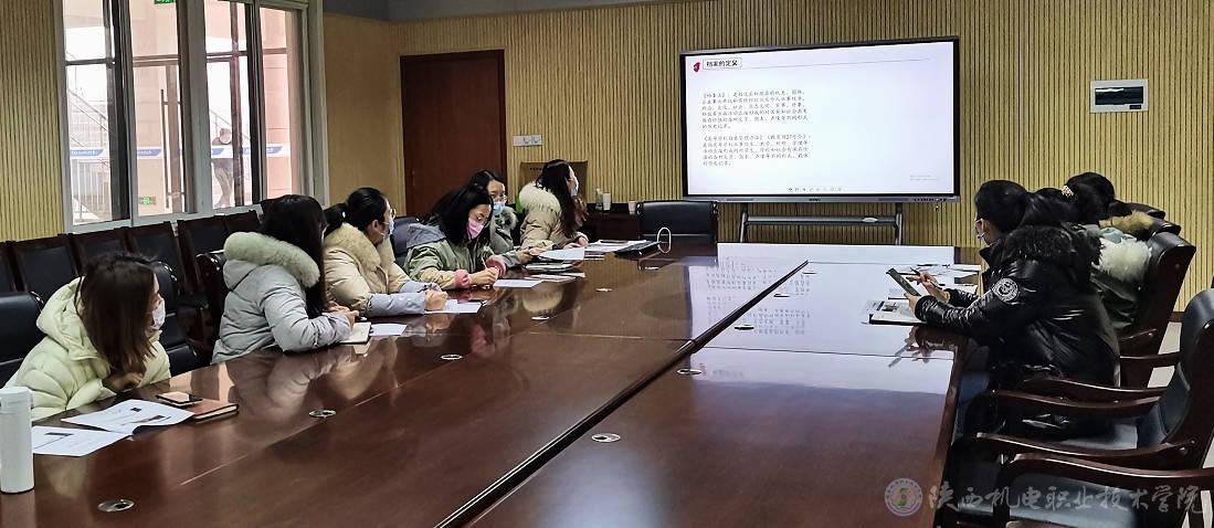 为贯彻落实《中华人民共和国档案法》《陕西省档案管理条例》《高校档案管理办法》(中华人民共和国教育部第27号令)等法律法规,增强全员档案管理意识,促进我校档案管理规范化、科学化,推进依法治档,根据《陕西省档案局关于开展档案行政执法检查的通知》要求,学校档案室于2021年12月31日、2022年1月5日分别在宝福路校区、蟠龙校区组织开展兼职档案员业务培训会,各部门兼职档案员参加了培训。
