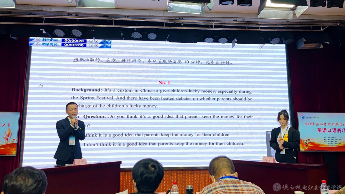 本届大赛由陕西省教育厅主办,西安铁路职业技术学院承办,高等教育出版社和外语教学与研究出版社联合协办。全省38所高职院校共计73名选手参加了比赛,其中包括英语专业组10人以及非英语专业63人。大赛完全对接国赛,分别由“中国故事”“职场描述”“职场交流”“职场辩论”四个环节组成。