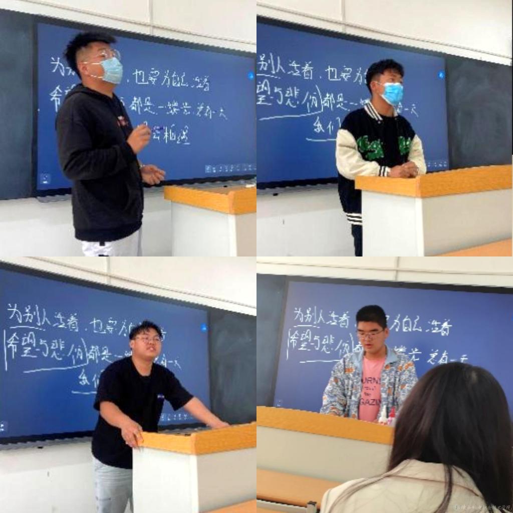 在老师们的分享结束后,现场的同学们受到启发,踊跃为大家推荐自己心目中的“那本好书”,并分享了宝贵的阅读体验。21软件技术1班的邵泽睿同学讲述自己阅读《云边有个小卖部》的感受,并着重分享了书中给自己留下深刻印象的语句,如“希望和悲伤,都是一缕光”等,指出悲伤同样也是一缕光,他积极向上的思想态度引起了在座同学们的共鸣。21信息安全1班的代祥涛同学为大家分享了《长津湖》,他讲述了书中所描述的志愿军战士在极度艰难环境下的意志力和忍耐力,向同学们传递了无坚不摧强大人生的信仰力量。21铁道运管班的郭啸远同学向大家推荐《许三观卖血记》,他认为这本书用讽刺幽默的语言写出平凡人物的坎坷与悲情,发人深思、引人同情,启发大家如何面对生活的苦难,引发了大家浓厚的阅读兴趣。21建工管理班的唐宇同学深情地向大家分享了自己阅读沈从文先生《我想做一个能在你的葬礼上描述你一生的人》的感悟,在谈及对亲情、友情和爱情的感受时,每到动情之处便哽咽在喉,打动了现场的每一位听众,也使大家对本书产生了深刻的印象。
